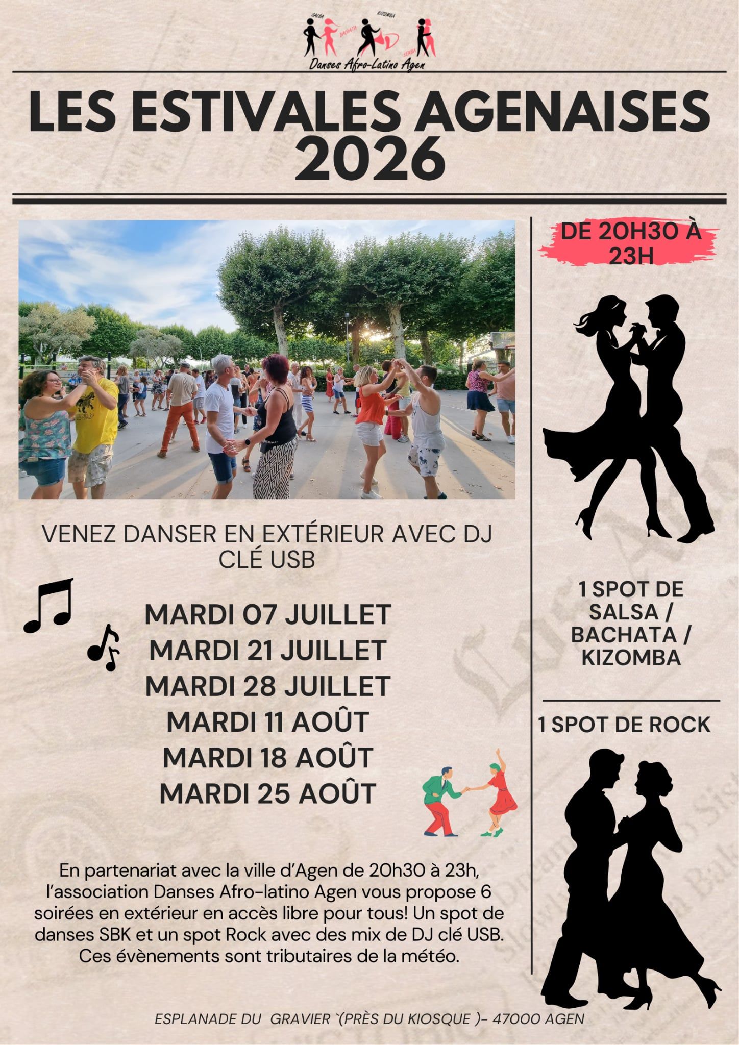 Chaque été, rejoignez-nous pour découvrir ou redécouvrir l’esplanade du Gravier. Dans une ambiance magique, DJ Clé USB vous prépare des playlists SBK (Salsa, Bachata, Kizomba) pour profiter de la douceur des nuits étoilées en musique.